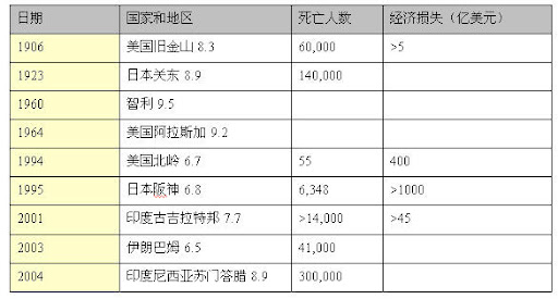 1556年(明·嘉靖)12月23日,关中大地震,震中在陕西华县、渭南、华阴一带。河北、安徽、湖南等地都波及影响,面积达90万平方公里,其中有28万平方公里属于破坏区。由于这次地震发生在午夜12时,正当人们熟睡之时,死伤惨重。当时的记载说:”官吏军民压死八十三万有奇”。 为什么中国不是世界上地震最多的国家,但是地震灾害最严重的国家呢?我们可以从三个方面分析其原因。 首先,全球地震大多数发生在海洋,对人类造成灾害的主要是发生在大陆的那些地震,中国的陆地面积仅为全球的1/14,但中国的大陆地震占全球大陆地地震的1/3至1/4。20世纪地球科学板块理论的建立,使得人们对于海洋有了比大陆更多的了解。目前,科学家对大陆地震的认识远远比不上对海洋地震的了解。但是,光有这一点还不够。为什么同样的大陆地震发生在美国和日本,灾害比中国要小得多呢? 2003年,三次地震分别发生在日本、美国和伊朗。地震造成的死亡人数差别极大。